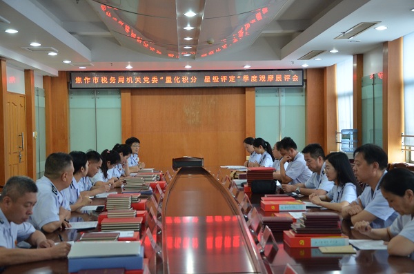 为进一步加强支部建设和党员管理,激发支部内生动力,7月24日下午,市税务局机关党委在七楼会议室召开量化积分 星级评定”季度观摩展评会,机关党委和各支部组织委员参会。