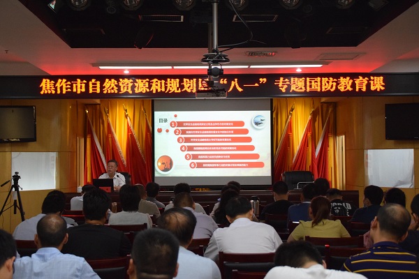 为迎接第93个“八一”建军节,进一步普及国防知识,教育引导全系统干部职工增强国防观念和国家安全意识、弘扬爱国精神。7月24日下午,原焦作军分区司令员阚辉以《世界安全战略格局和我国周边安全形势的发展变化及军事应对策略》为题,为全市自然资源和规划系统400多名干部职工上了一堂生动、深刻的国防教育课。局属单位人员通过“钉钉”软件同步观看视频直播。